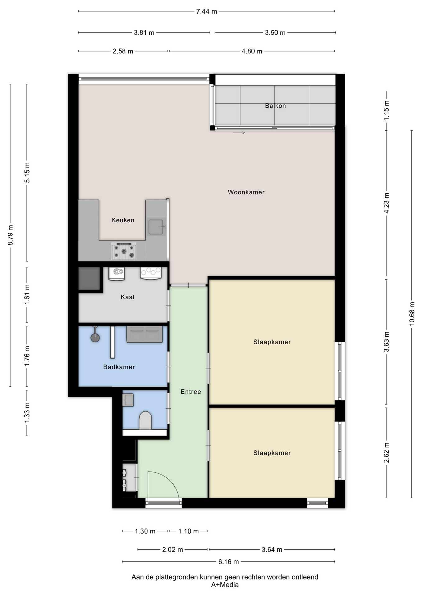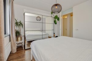 De twee slaapkamers zijn mooi van formaat en voorzien van een groot raam. De kamers zijn resp. 13m² en 9,5 m² groot en voorzien van een laminaatvloer.