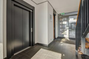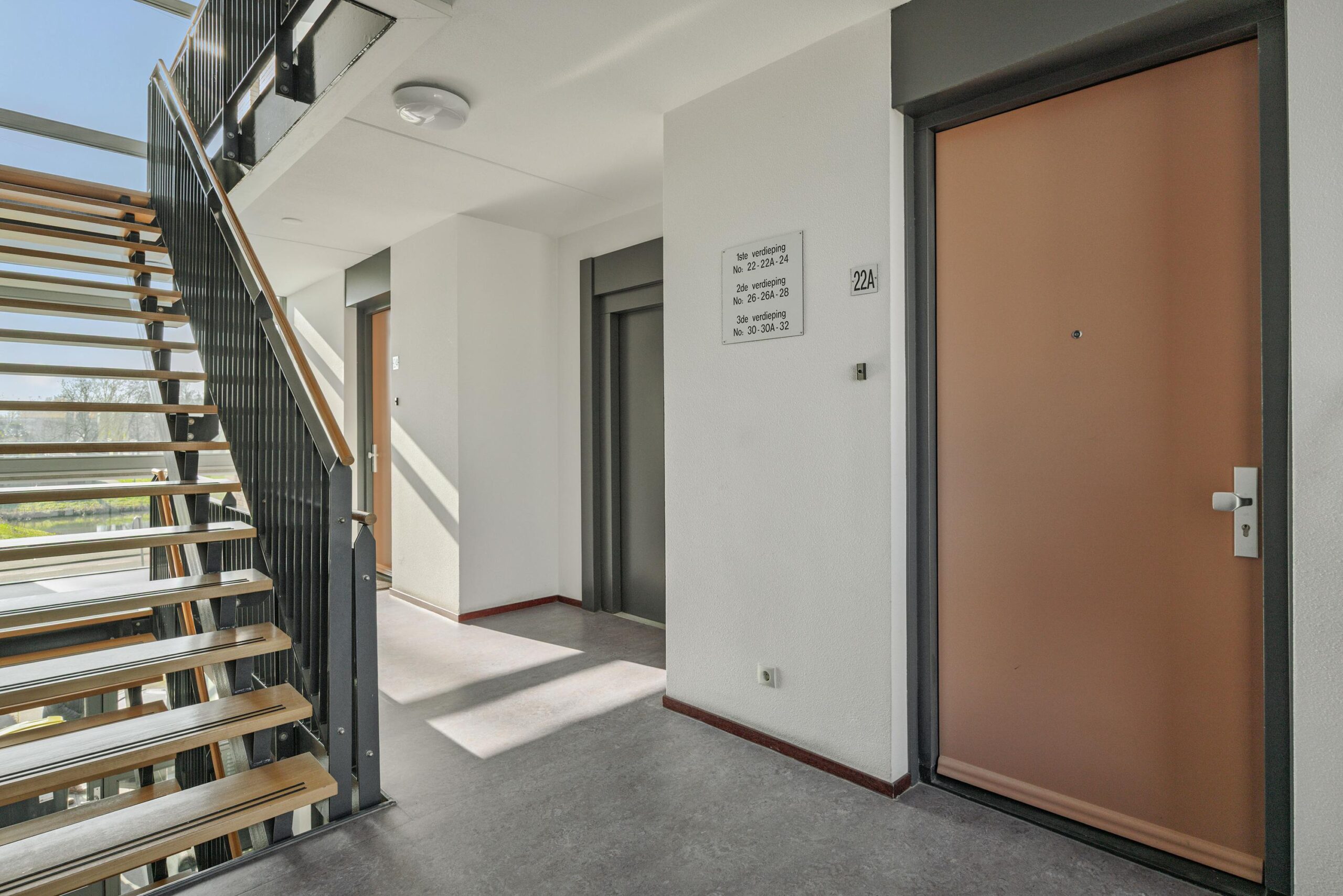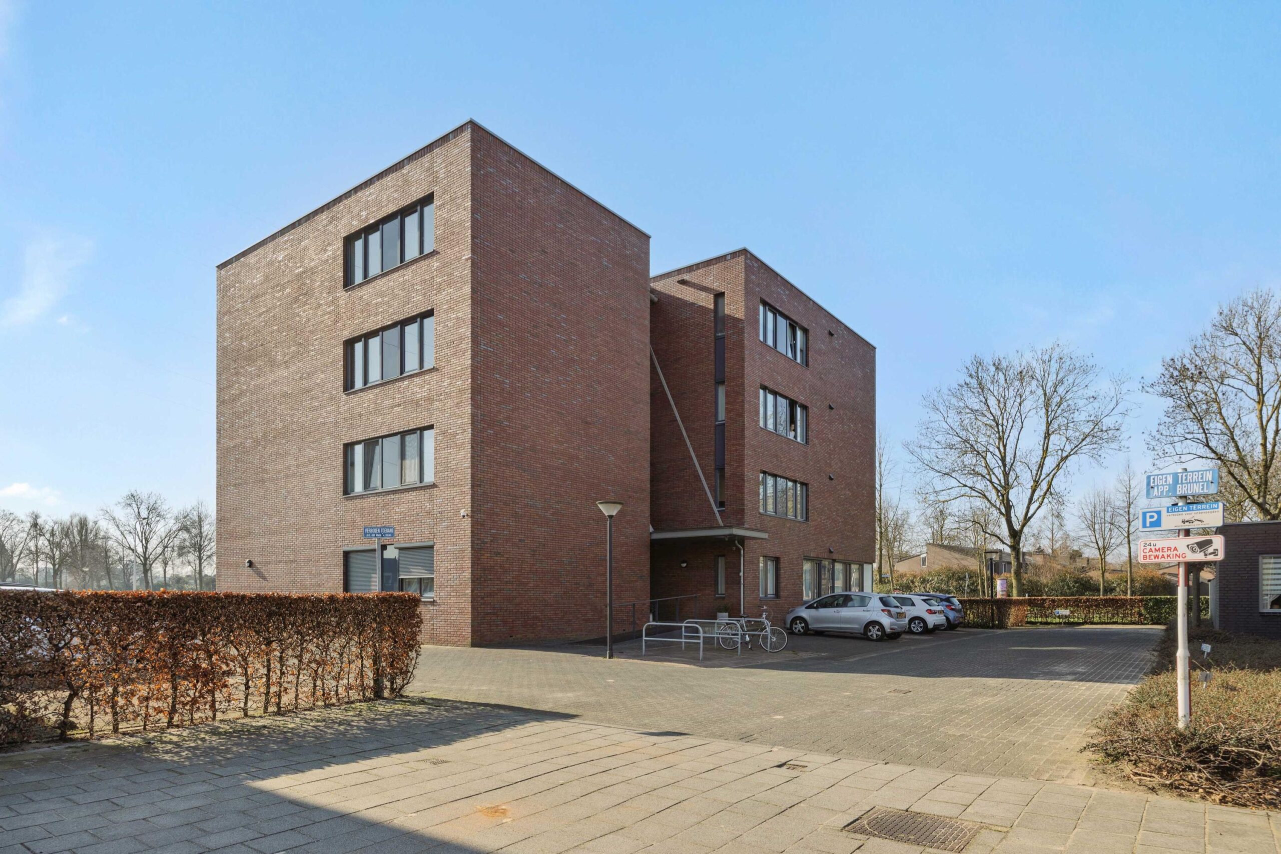 Via de centrale entree met brievenbussen en bellentableau is het appartement met de lift of de trap bereikbaar. Daarnaast geeft de centrale hal toegang tot de eigen berging. Op het buitenterrein bevindt zich de eigen parkeerplaats.