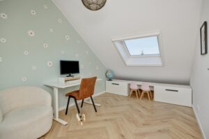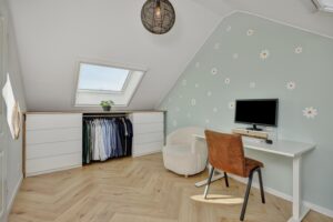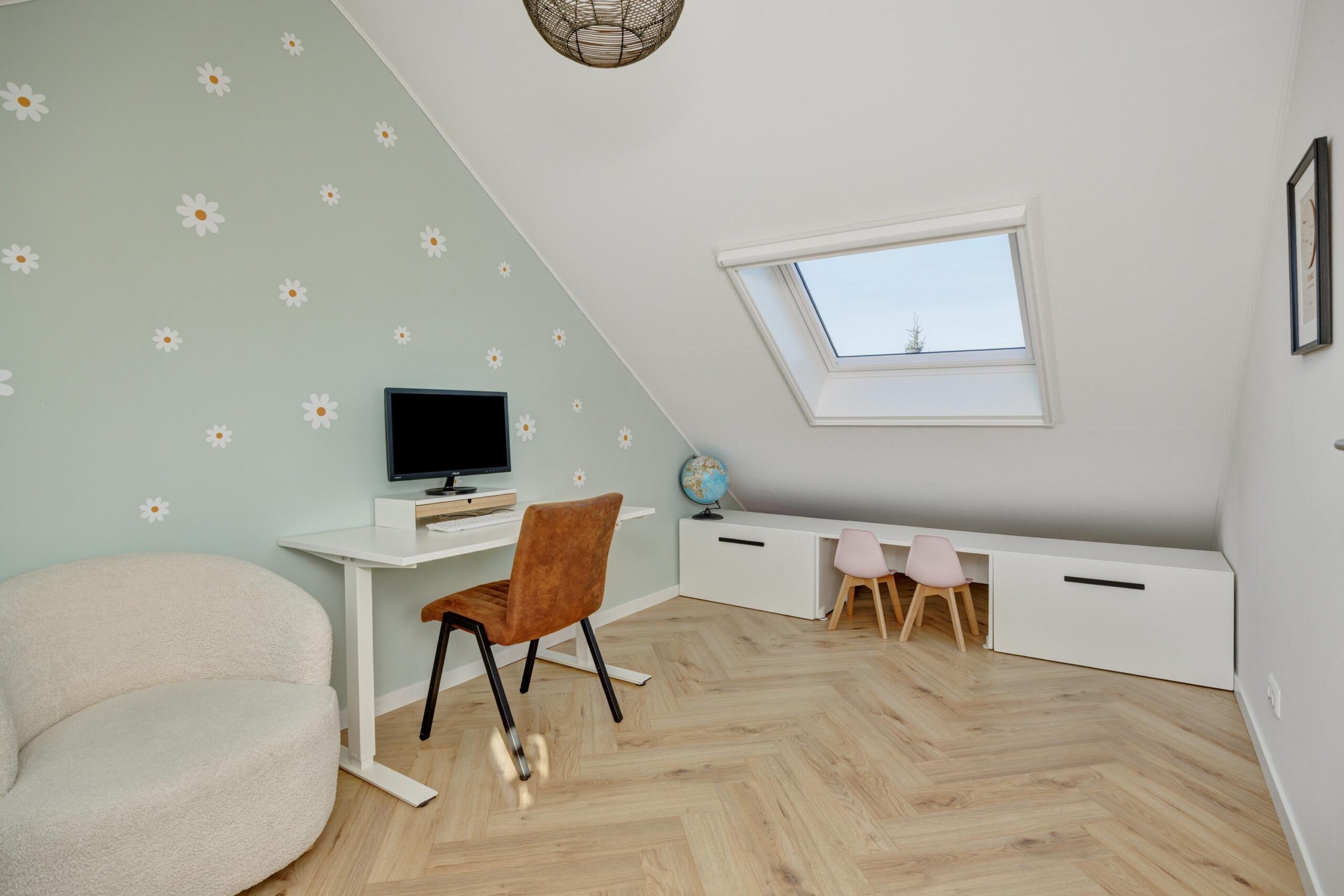 De royale vierde slaapkamer is voorzien van een laminaatvloer en vernieuwde Velux dakramen, wat zorgt voor een prettige lichtinval.