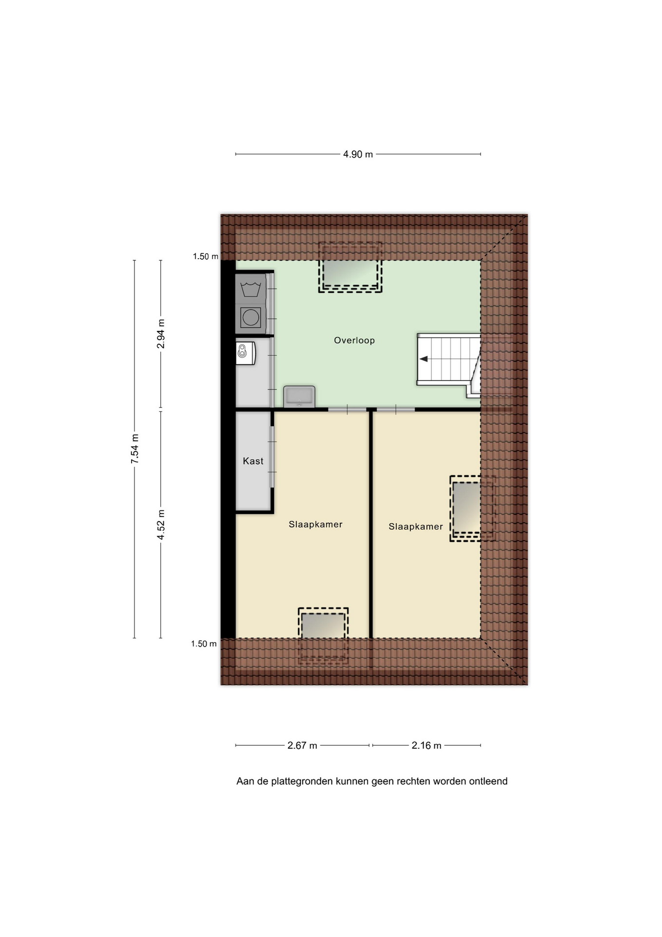 Via de vaste trap is deze verdieping met royale voorzolder en 2 slaapkamers te bereiken. De voorzolder is voorzien van een Velux-dakraam, wastafel met meubel en vaste kast met de aansluiting voor de wasmachine en droger en de opstelplaats van de c.v.-ketel.