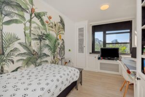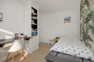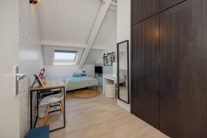 Aan de voorzijde van de woning zijn de derde en de vierde slaapkamer, beide met Velux dakraam, gelegen. Eén van de kamers is voorzien van een vaste kast.