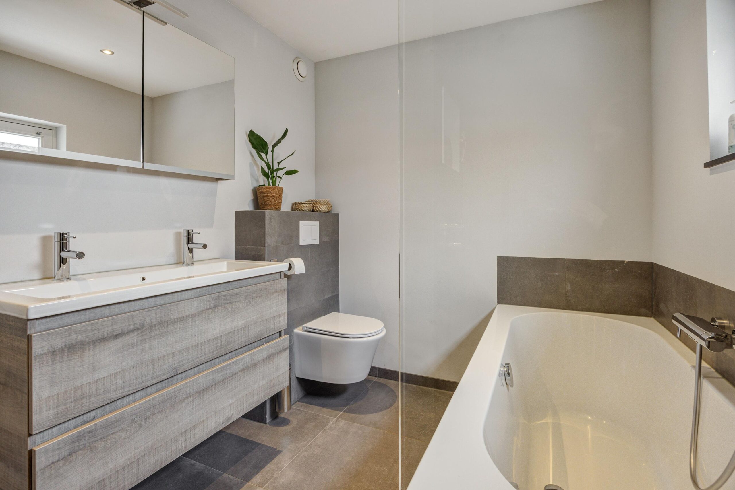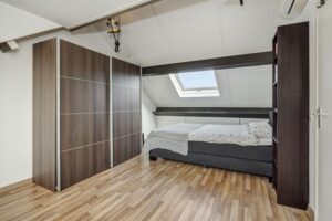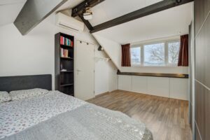 Overloop met airconditioning en toegang tot drie volwaardige slaapkamers, die allemaal zijn voorzien van horren. De ouderslaapkamer beschikt over een vaste kast en twee slaapkamers zijn uitgerust met rolluiken. De moderne badkamer is in 2022 vernieuwd en voorzien van een comfortabel ligbad, een breed wastafelmeubel, een inloopdouche met easydrain, een tweede toilet en een designradiator. De wanden zijn deels gestuukt en deels betegeld. Een raam zorgt voor natuurlijke ventilatie en extra licht. De tweede verdieping is via een vaste trap bereikbaar.