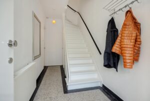 Terug in de hal gaan we via de vaste trapopgang naar de eerste verdieping.