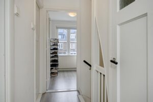 Via de entree aan de voorzijde van de woning komen we in de hal met vernieuwde meterkast, toiletruimte (met wandcloset en fonteintje), berg-/trapkast en toegang tot de living en de woonkeuken. Tevens bevindt zich in de hal de trapopgang naar de eerste verdieping.