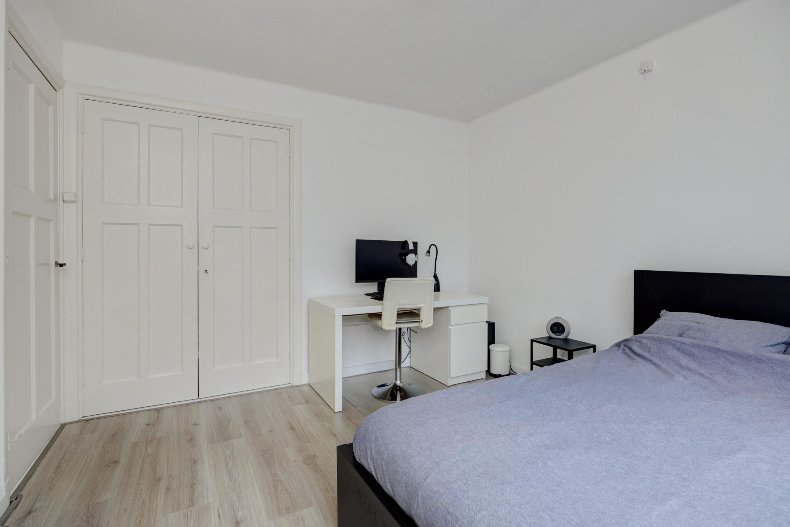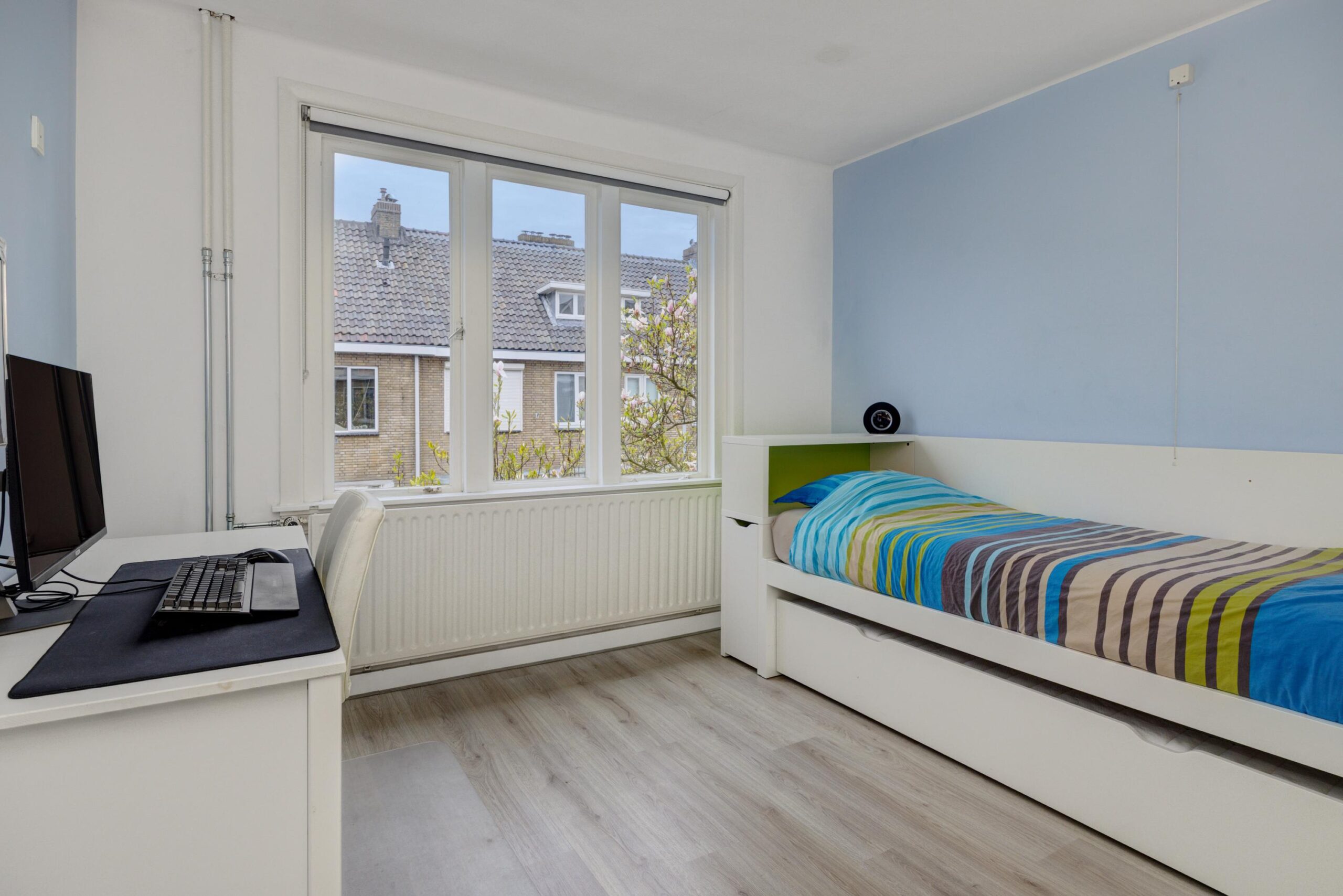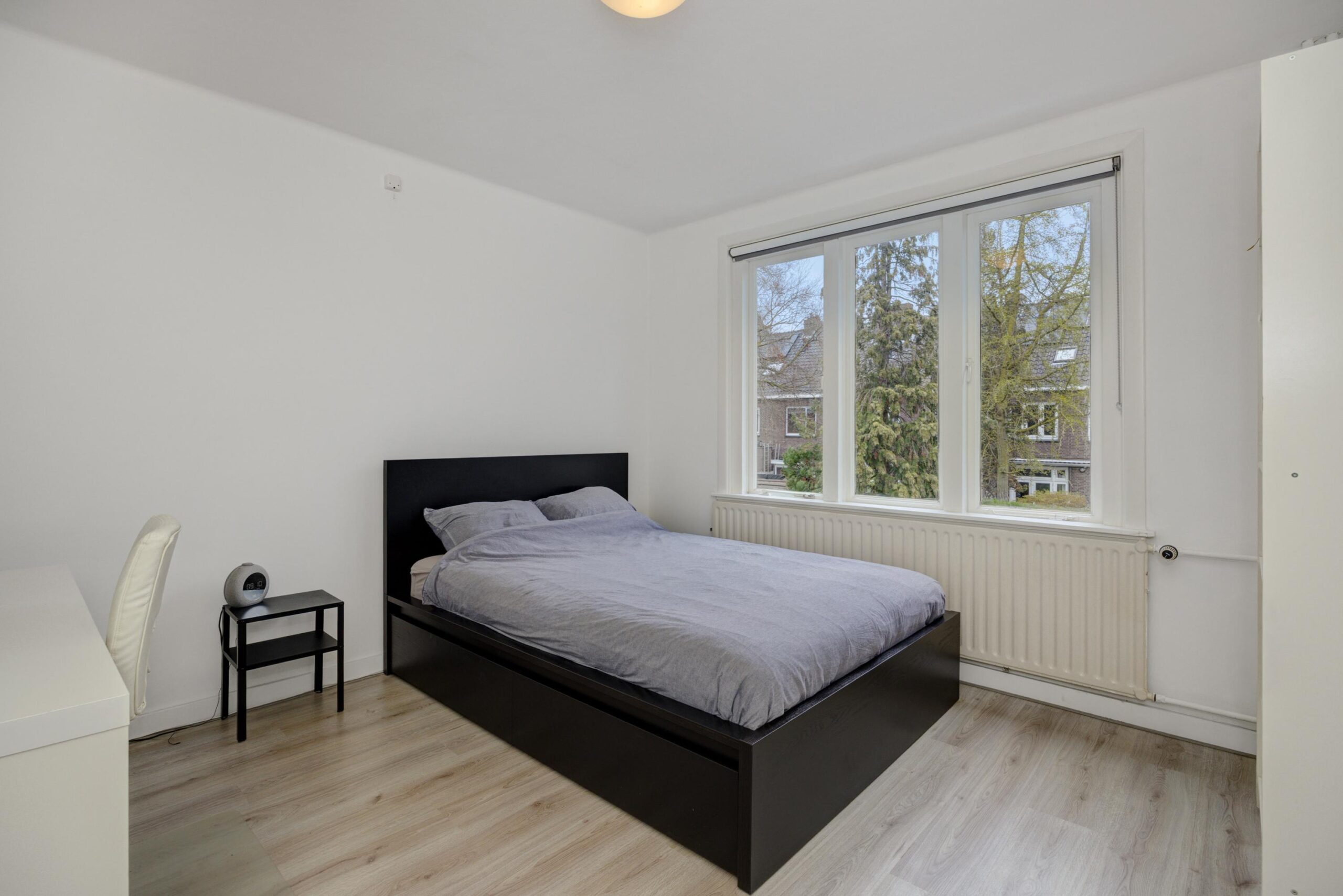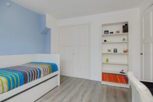 Als eerste betreden we de royale slaapkamer, welke aan de achterzijde van de woning is gesitueerd. De tweede slaapkamer is ook aan de achterzijde gelegen. Aan de voorzijde is de derde slaapkamer gesitueerd. De slaapkamer aan de achterzijde en de slaapkamer aan de voorzijde zijn voorzien van 2 vaste kasten die overlopen in elkaar.