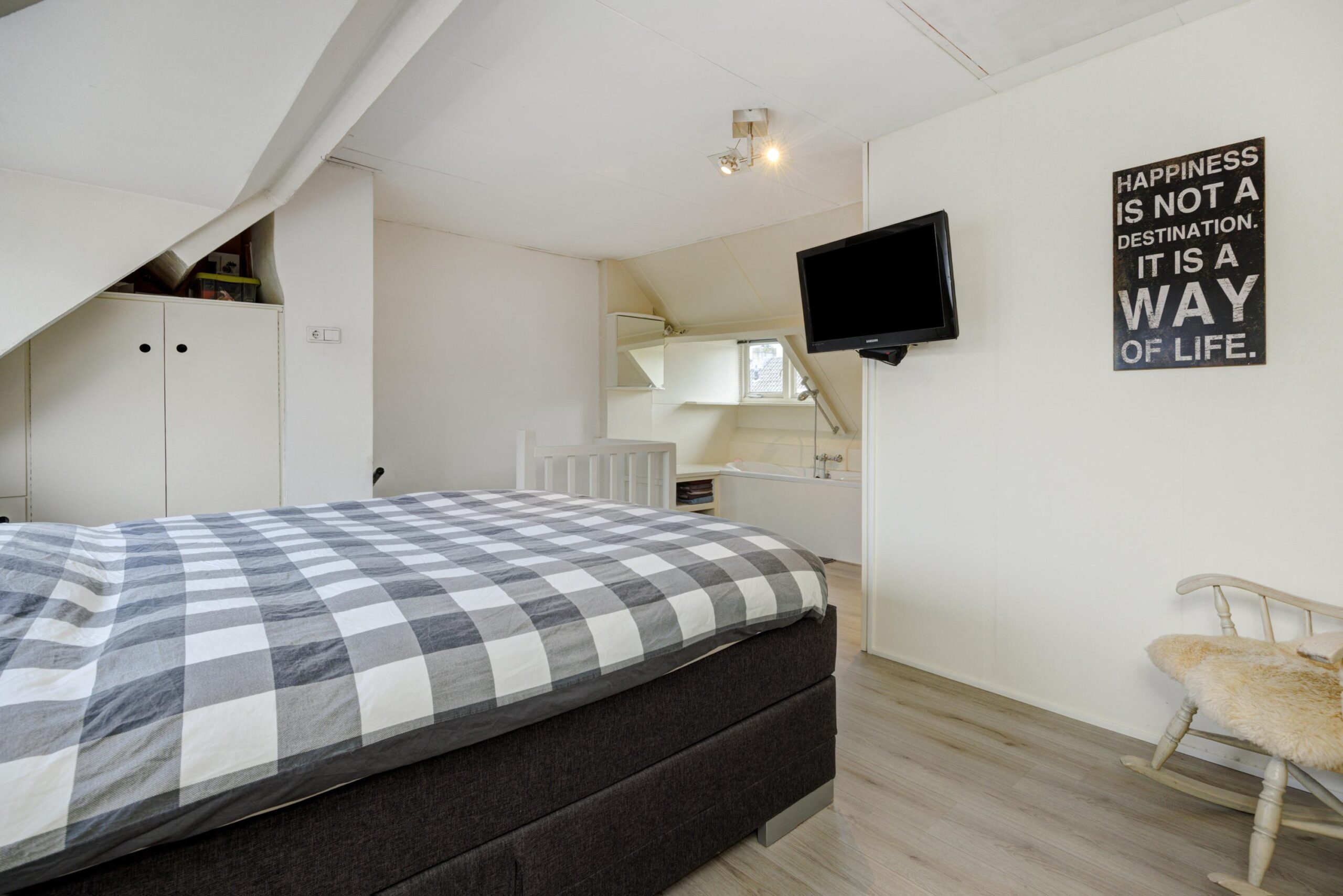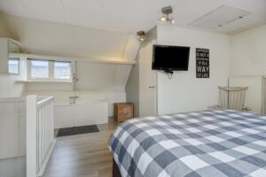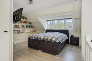 De royale vierde slaapkamer is mooi van formaat en voorzien van 2 dakkapellen, een ligbad en extra bergruimte deels achter het knieschot, alsmede op de vliering.