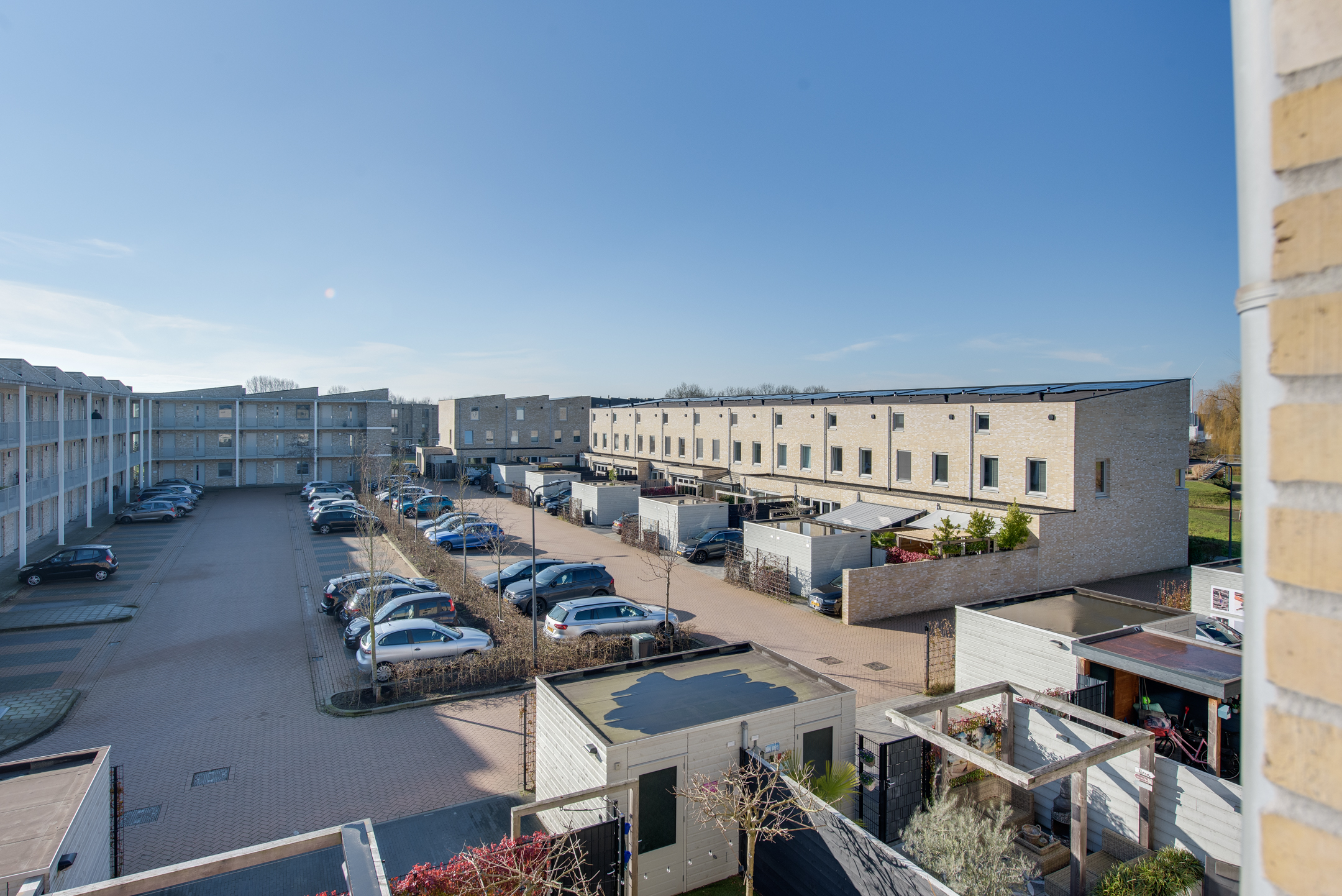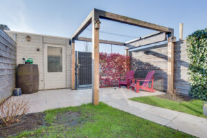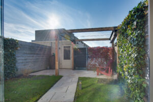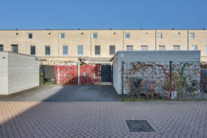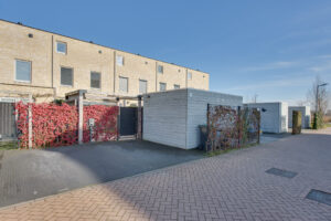 Achterin de tuin bevindt zich een houten berging. Via de poort heeft u directe toegang tot uw eigen parkeerplaats en het achtergelegen parkeerterrein met voldoende ruimte voor gasten.