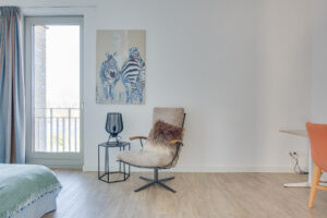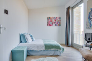 Middels een vaste trap bereikt u de tweede verdieping. Deze is ingedeeld met een ruime voorzolder, een technische ruimte/wasruimte en een derde grote slaapkamer. Het licht schuin aflopende ‘shed’-dak zorgt aan de voorzijde voor een zeer riante kamer met een hoge nok, wat een prachtig ruimtelijk effect geeft. Deze slaapkamer beschikt bovendien over een Frans balkon.