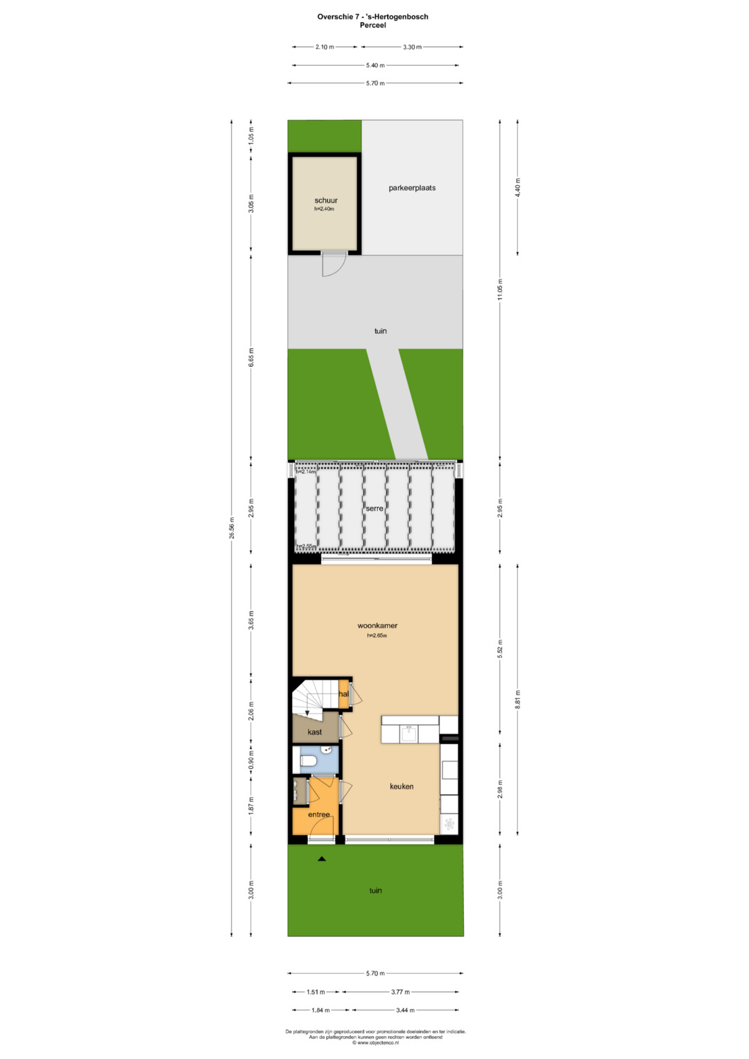 De entree/hal bevindt zich aan de voorzijde. Echter, de ervaring leert dat in Brabant veel mensen ervoor kiezen om ‘achterom’ binnen te komen. De woning beschikt dan ook over een eigen parkeerplaats direct aan de achterzijde.