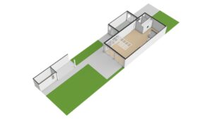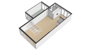 De voormalige garage is omgetoverd tot een extra kamer, welke ideaal kan dienen als een speel- en/of werkruimte. Er is een keukenblok aanwezig, alsmede de aansluitingen voor de wasmachine en droger. Vanuit deze ruimte krijgen we toegang tot zowel de achtertuin als de oprit aan de voorzijde.