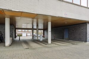 Centrale entree met videofoon, brievenbussen en de vernieuwde hal met lift en trappenhuis. Vanuit hier is er toegang tot het afgesloten parkeerterrein aan de achterzijde, met je eigen parkeerplaats en de bergingen, die ook via een aparte entree voor bewoners bereikbaar zijn.