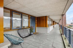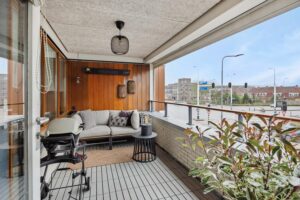 Het balkon is gelegen op het zonnige zuiden; een heerlijke plek om al vroeg in het voorjaar buiten te zitten. Je auto parkeer je veilig op het achtergelegen privéterrein, dat via een slagboom alleen toegankelijk is voor bewoners. Fietsen (zelfs een bakfiets) en andere spullen berg je gemakkelijk op in de zeer ruime inpandige berging (voorzien van een extra vide voor maximale opslag!), die via een aparte toegang bereikbaar is. Goed om te weten: de centrale hal en het trappenhuis worden momenteel vernieuwd, wat het complex een frisse, moderne uitstraling geeft.
