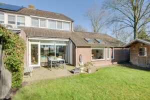 Deze woning wordt vanaf het bouwjaar door de huidige eigenaar bewoond en nu na circa 48 jaar voor het eerst te koop aangeboden. Dit geeft wel aan hoe het woongenot is van zowel de woning als de omgeving. De woning is gelegen op de hoek van een rij met 4 woningen in een autoluwe straat met aan de achterzijde vrij zicht over het groen. Aan de voorzijde ligt een grote groenstrook met speeltuintje. De voormalige garage is bij de woning getrokken, waardoor er een royale woonkamer is ontstaan. Op de begane grond is de woning voorzien van een ruime uitgebouwde woonkamer, een half open keuken en een berging/bijkeuken aan de voorzijde. Op de eerste verdieping bevinden zich 3 slaapkamers en een vernieuwde badkamer. Via een vaste trap is de tweede verdieping te bereiken waar de vierde slaapkamer is gesitueerd. De zonnige achtertuin is gelegen op het zuidwesten, is mooi ruim, en biedt veel privacy door de vrije ligging aan de achterzijde. Om het geheel compleet te maken is er parkeergelegenheid op eigen terrein.