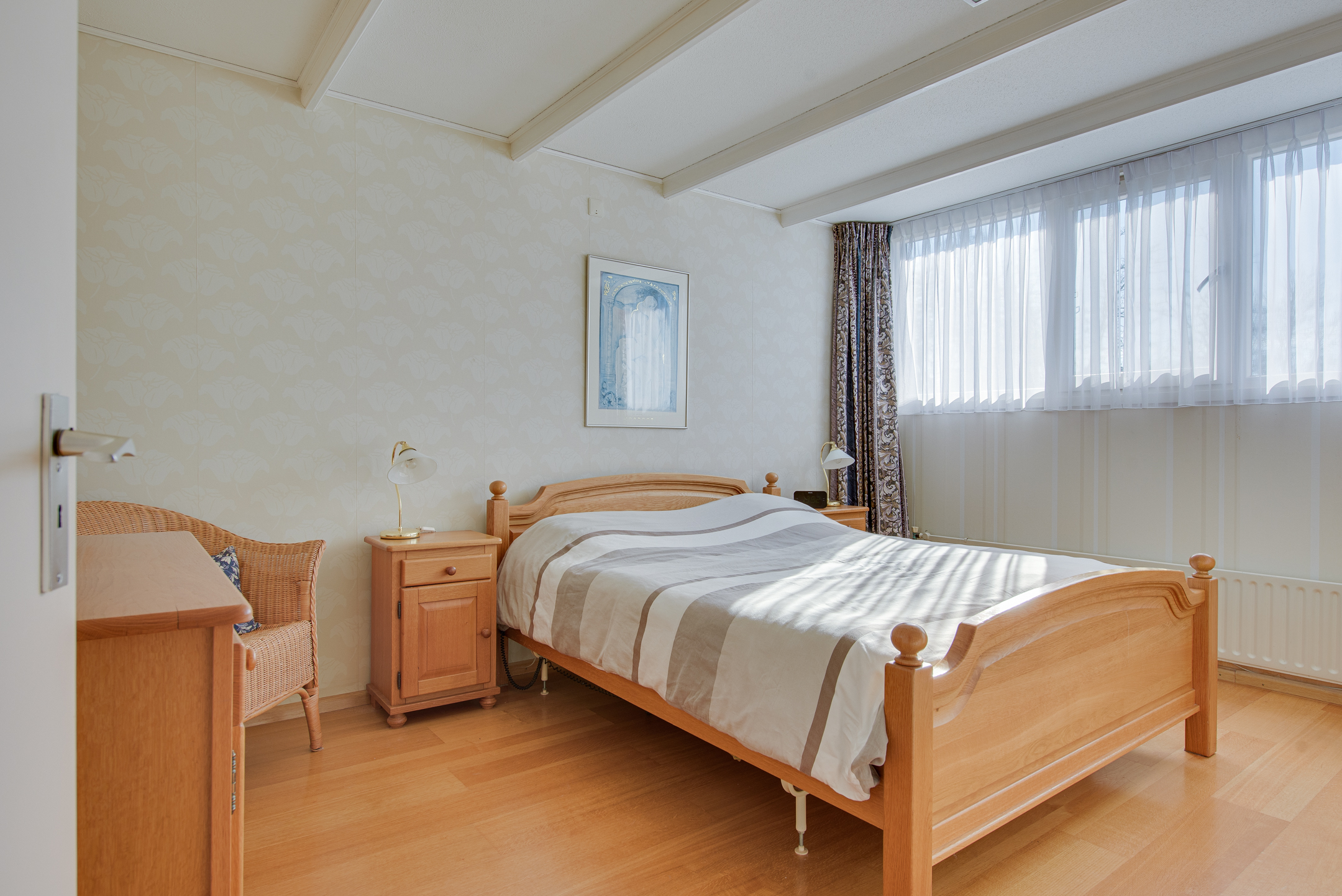 De masterbedroom is aan de achterzijde van de woning gelegen en is met ca. 13m² mooi van omvang. De tweede slaapkamer is tevens aan de achterzijde gesitueerd. De kamers aan de achterzijde zijn voorzien van kunststof kozijnen met rolluiken. Aan de voorzijde van de woning is de derde slaapkamer gelegen, deze kamer heeft een extra speels zijraam en een mooi vrij uitzicht.