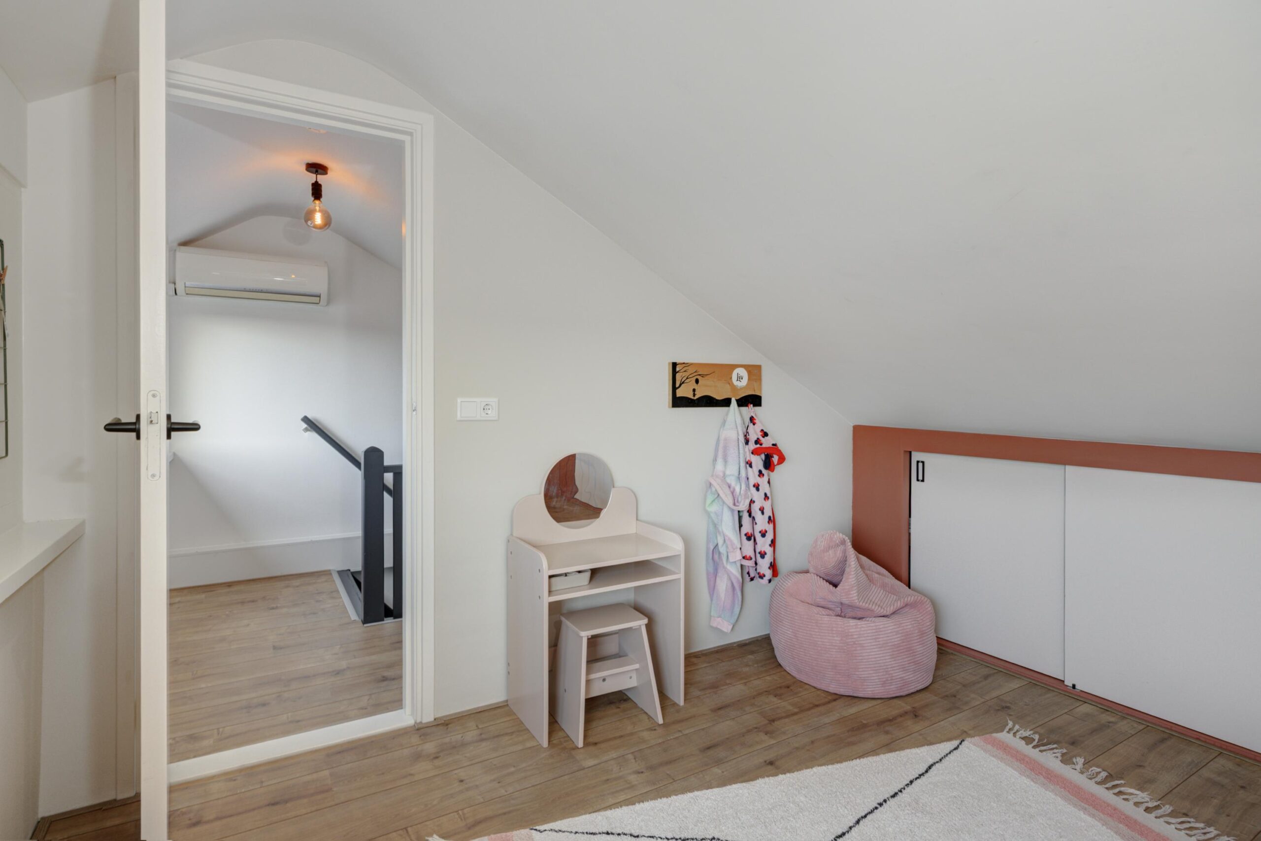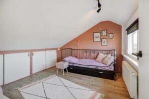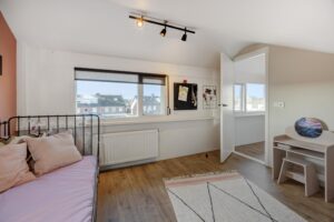 De tweede verdieping is in 2021 volledig aangepakt. Doordat er een dakopbouw is geplaatst is het een volwaardige verdieping. Op de voorzolder hangt een airco die kan koelen en verwarmen, en hier vind je in een aparte kast de opstelling van de hybride warmtepomp (2023) met boiler. Verder is hier een ruime extra slaapkamer aanwezig. Ook deze verdieping is hoogwaardig afgewerkt met strak stucwerk, een nette laminaatvloer, horren en rolluiken.