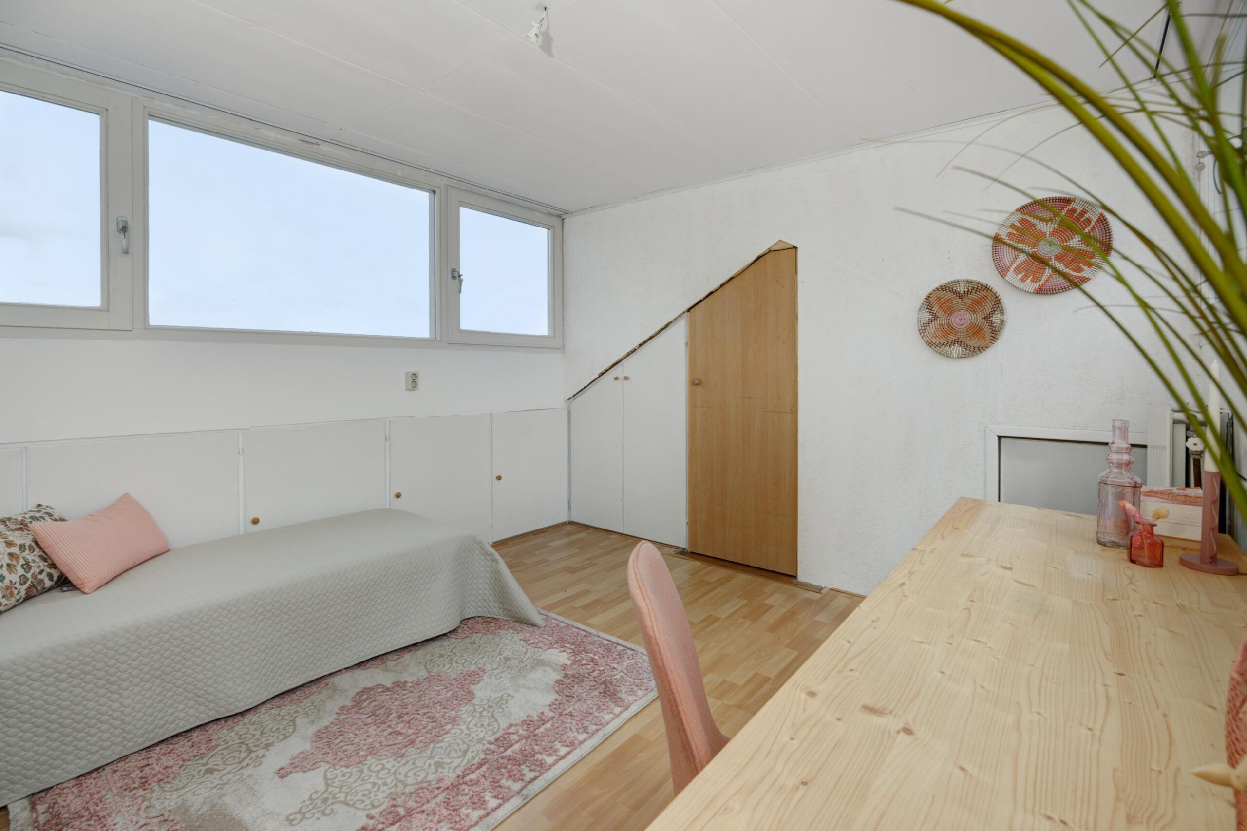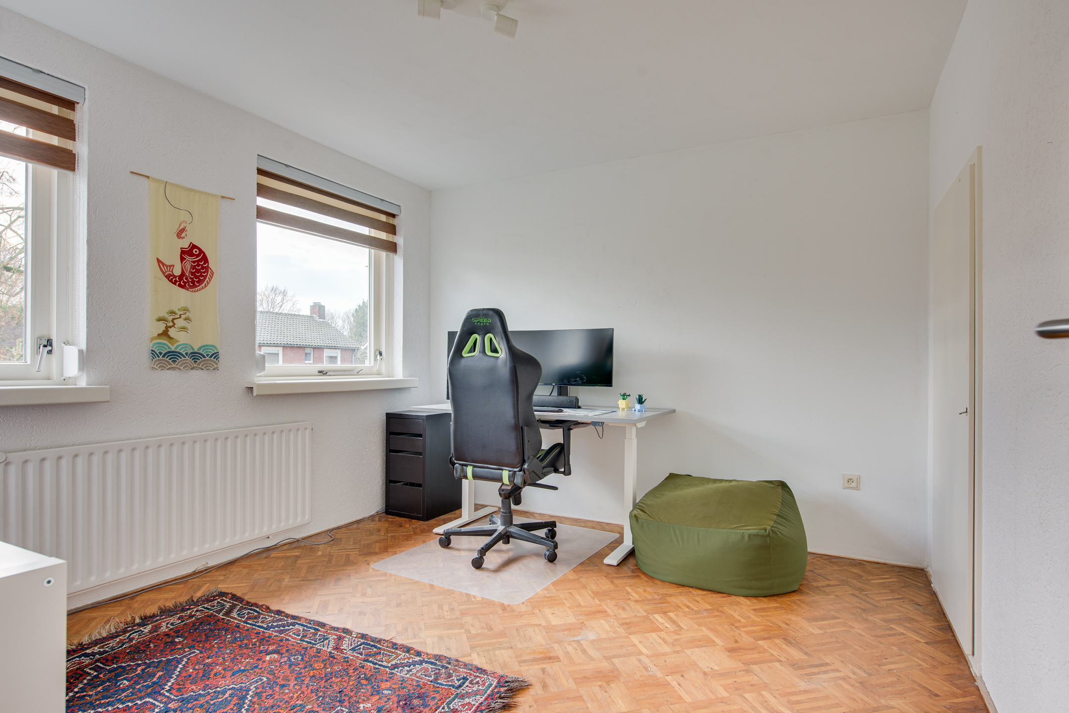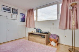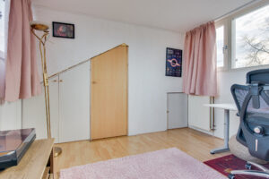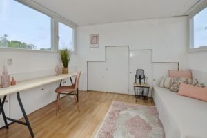 Laat u verbazen door deze verrassend ruime en lichte etage. Doordat aan weerszijden zoveel ramen zijn aangebracht krijg je een prachtige, natuurlijke lichtinval en versterkt dit het ruimtelijk effect aanzienlijk. De ruimte is keurig afgewerkt met een laminaatvloer en door de aangebrachte knieschotten heb je ook nog eens een zee aan opbergruimte. Je kunt de ruimte als royale, vierde slaapkamer gebruiken, maar ook als kantoor- of hobbyruimte.
