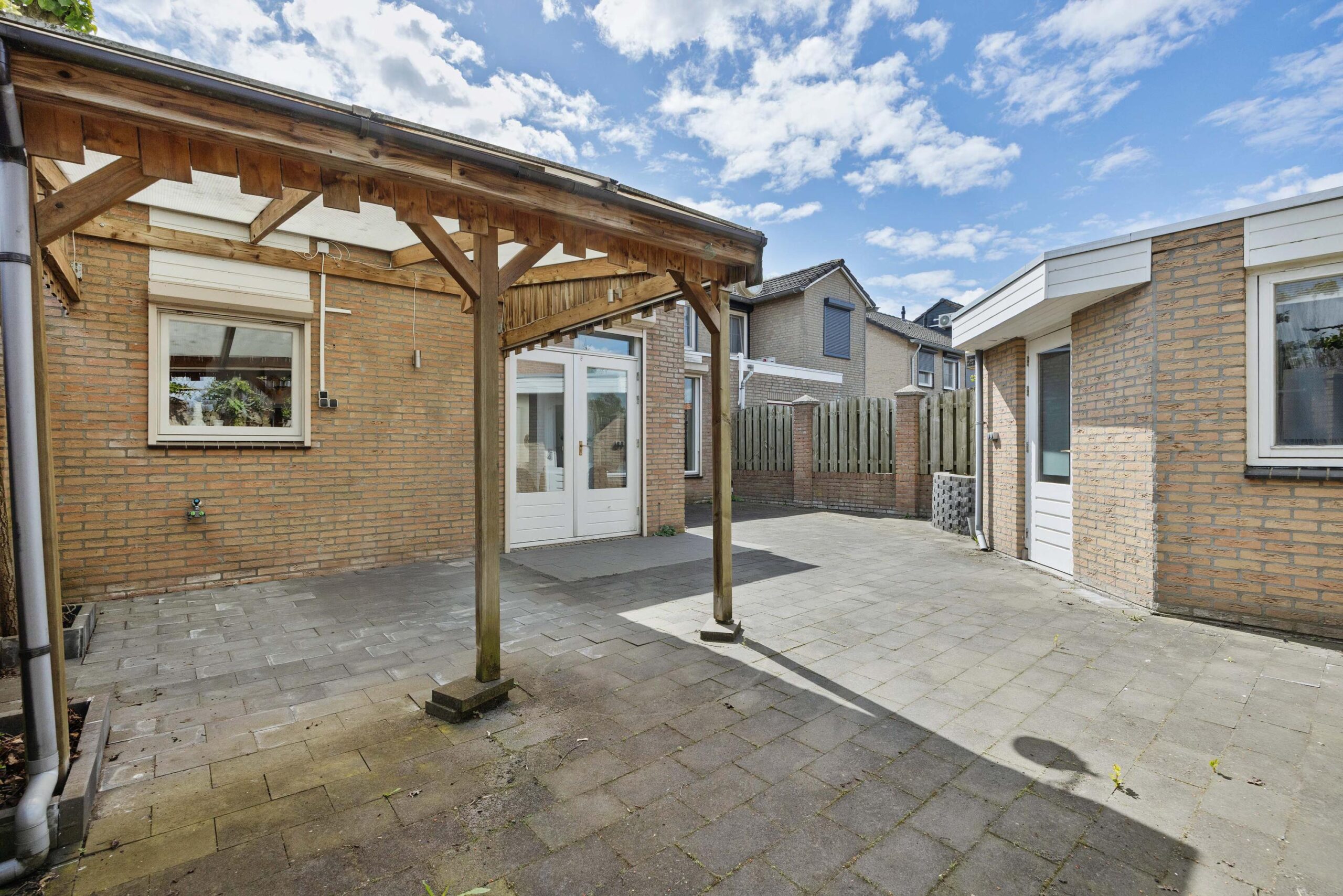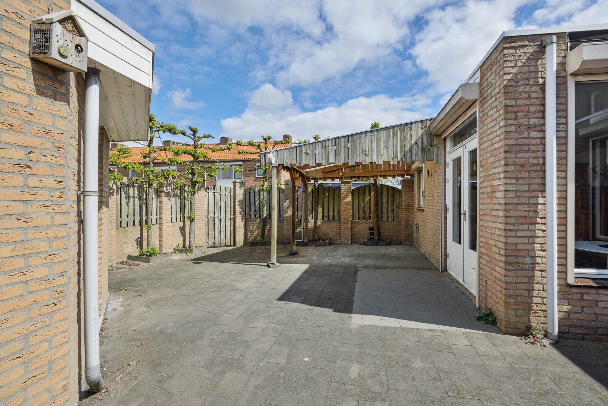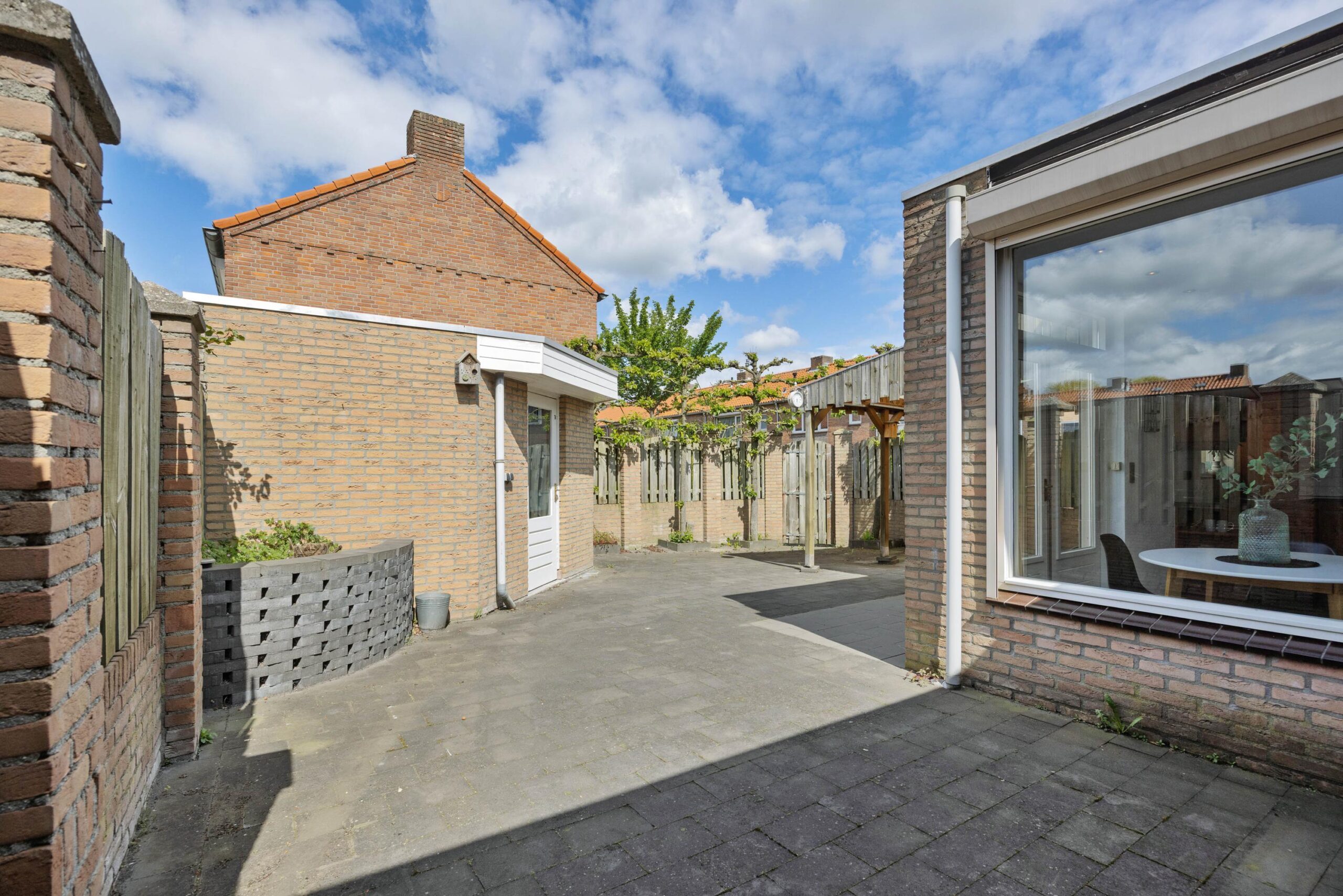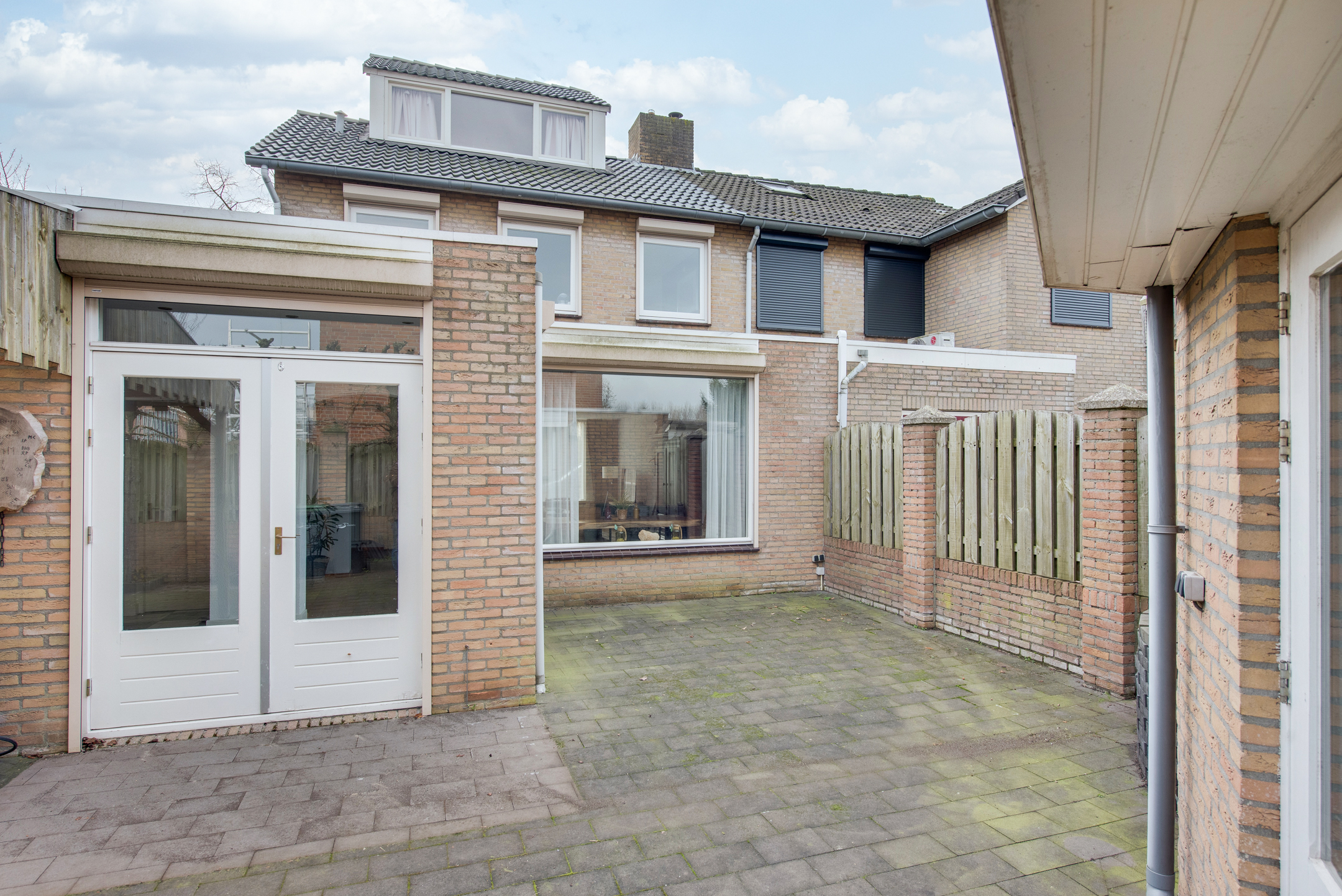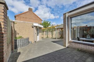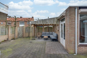 Via de woonkeuken bereiken we de besloten privacyvolle achtertuin met achterom. De tuin is onderhoudsvriendelijk aangelegd met sierbestrating; een aantal borders met beplanting zorgt ervoor dat er een fijne sfeer is.