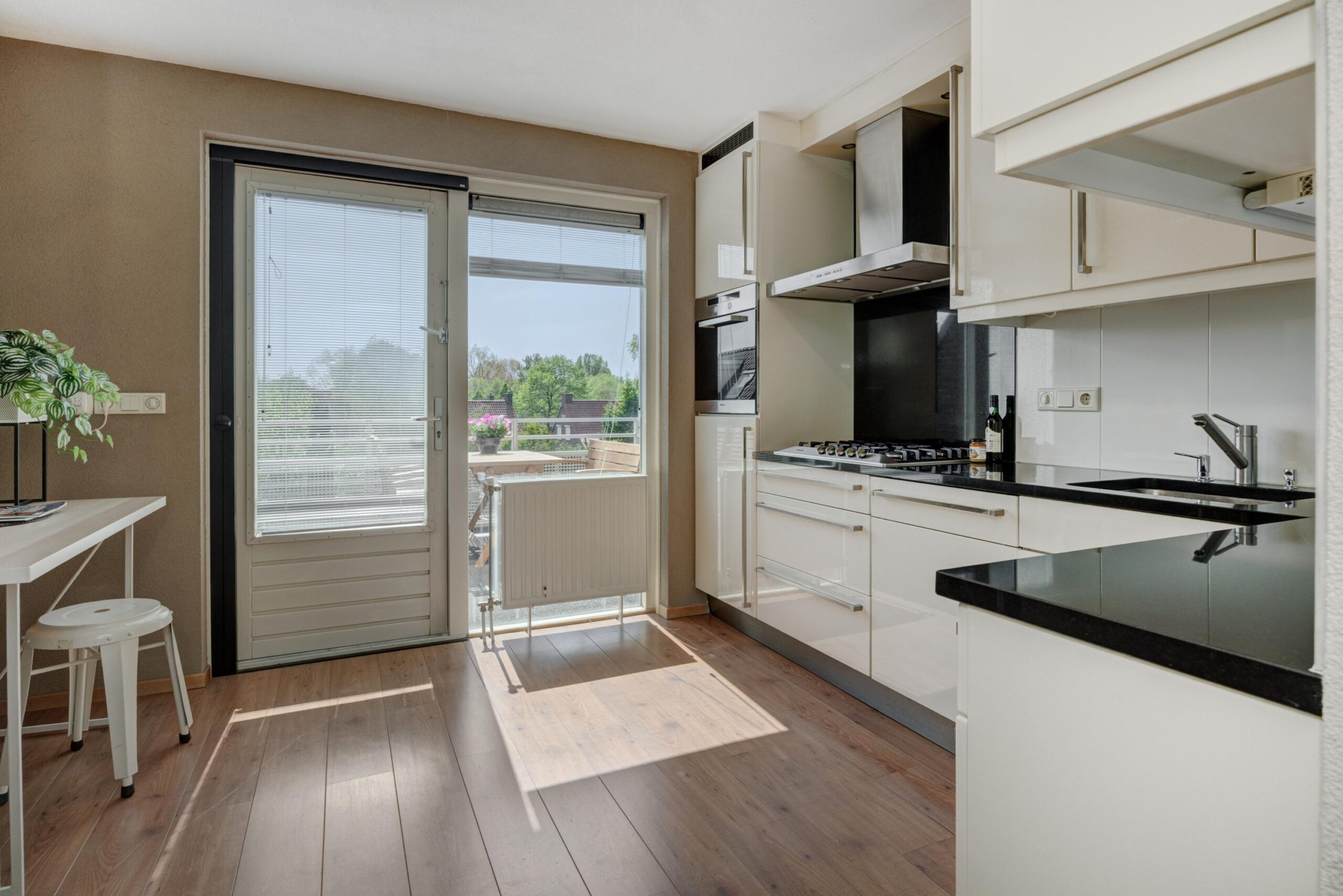 De keuken is gelegen aan de achterzijde en uitgevoerd in een L-opstelling met hoogglans fronten en een granieten aanrechtblad. De keuken is uitgerust met een 5-pits gasfornuis, RVS afzuigkap, combi-oven, vaatwasser en koelkast. Vanuit de keuken is het balkon bereikbaar.