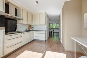 Tussen de woonkamer en de keuken bevindt zich een praktische bergkast en een aparte wasruimte met de aansluitpunten voor uw wasapparatuur en de opstelplaats van de cv-ketel.