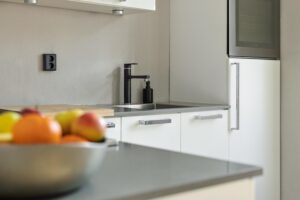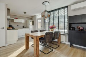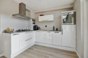 De open keuken is voorzien van diverse inbouwapparatuur waaronder een vaatwasser, oven en een 5-pits gasfornuis met afzuigkap. In de woonkamer is in 2024 een airco geplaatst die zowel kan koelen als verwarmen.