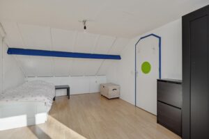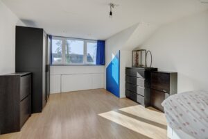 Via een vaste trap bereiken we de tweede verdieping. Hier bevindt zich een ruime vierde slaapkamer met een groot dakkapel, wat zorgt voor veel licht en extra ruimte. Daarnaast is er praktische bergruimte aanwezig in de schuinte van het dak. De voorzolder is voorzien van de aansluitingen voor de wasmachine/droger en de CV-ketel (Remeha 2019).
