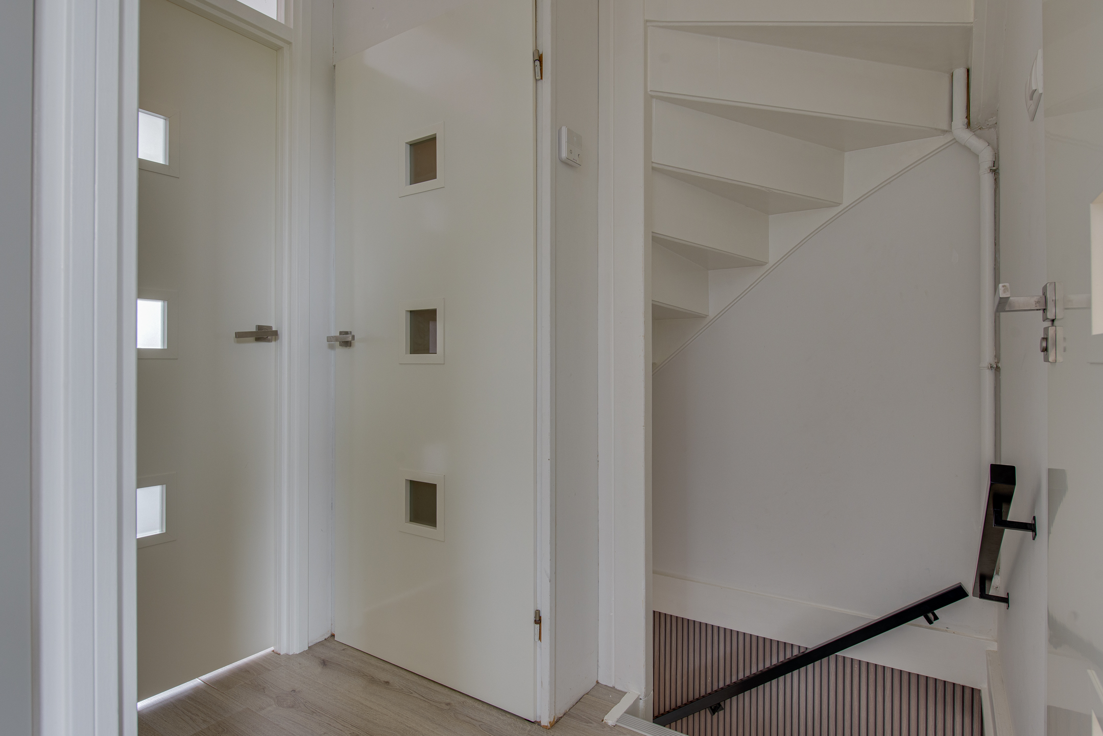 Via de hal gaan we middels de vaste trap naar de verdieping.