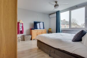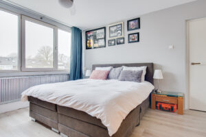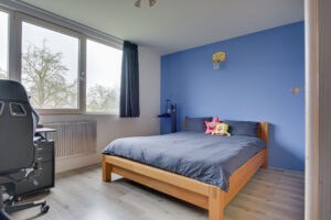 De masterbedroom aan de achterzijde van de woning is met zijn 17m² ruim van formaat en is voorzien van airconditioning en raam met elektrisch rolluik. Naast deze kamer is de tweede slaapkamer gesitueerd, ook deze kamer is voorzien van een elektrisch rolluik. Aan de voorzijde van de woning bevindt zich de derde royale slaapkamer.