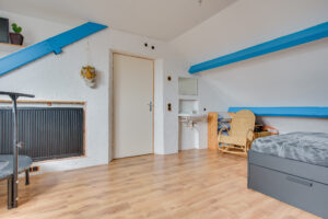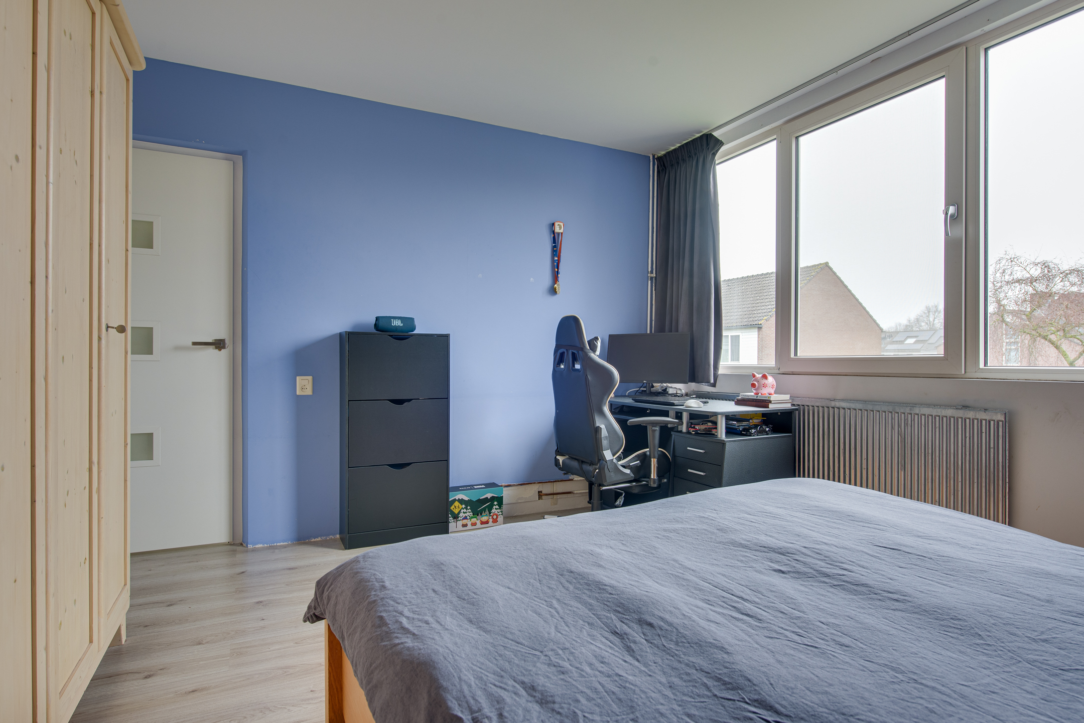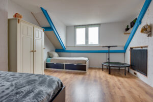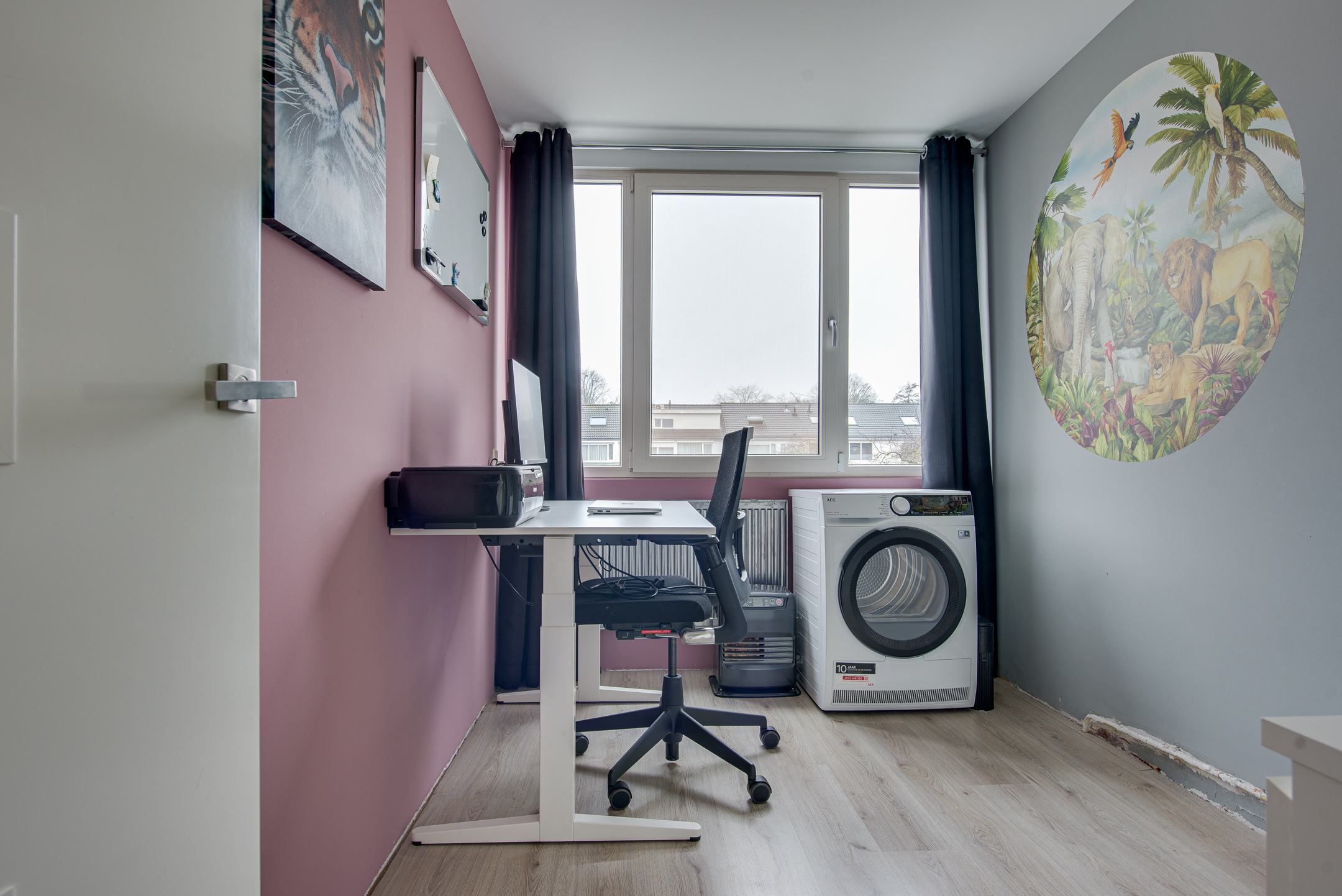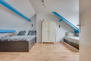 De vierde slaapkamer is voorzien van een dakkapel, bergruimte aan de achterzijde en een wastafel.