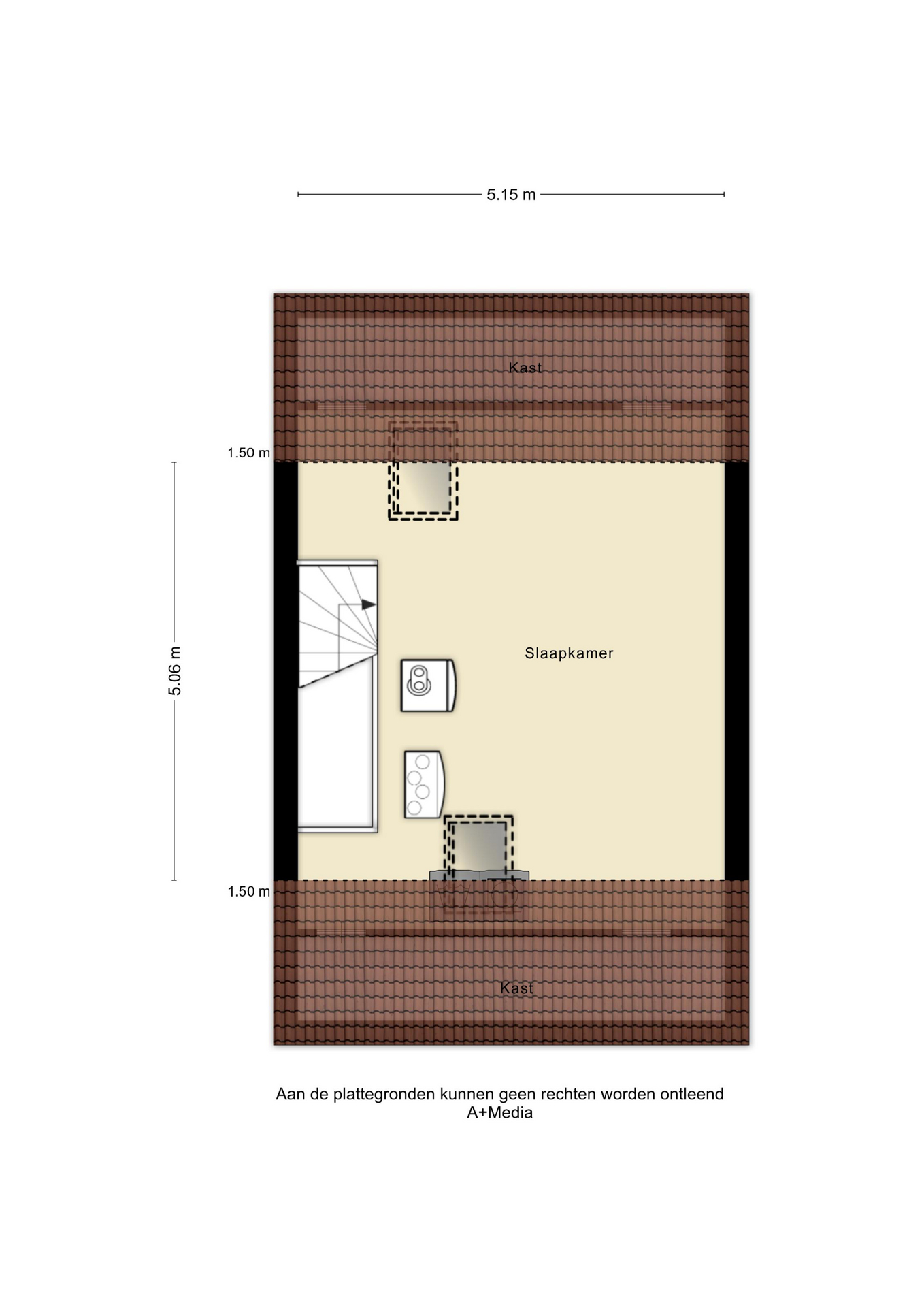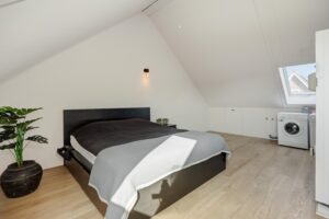 In de dakschuinte is praktische opbergruimte gecreëerd. Dankzij het royale oppervlak is deze verdieping groot genoeg om twee extra slaapkamers te realiseren, waardoor de woning in totaal kan beschikken over maar liefst vijf slaapkamers.