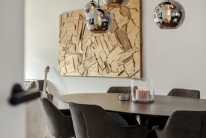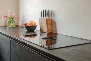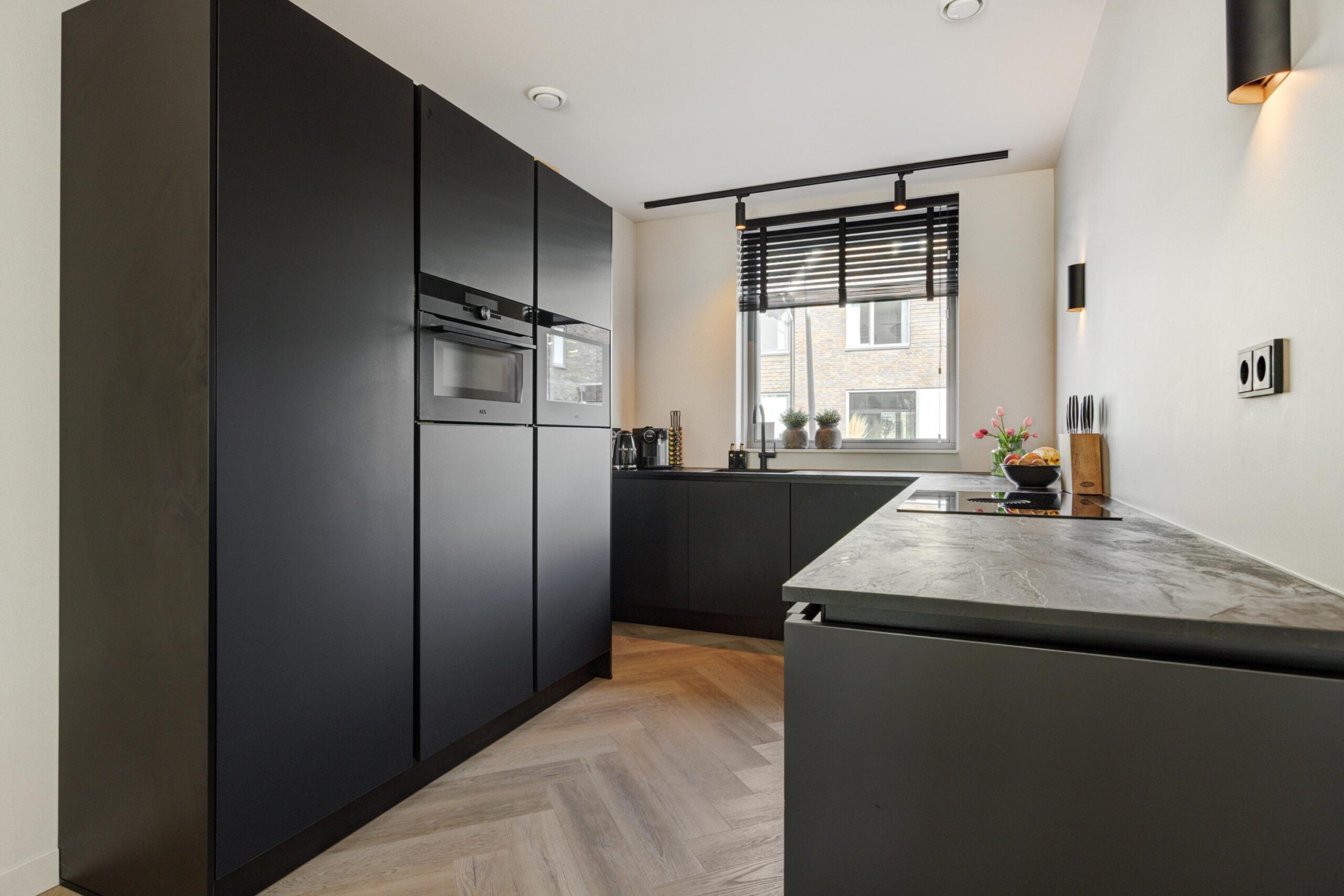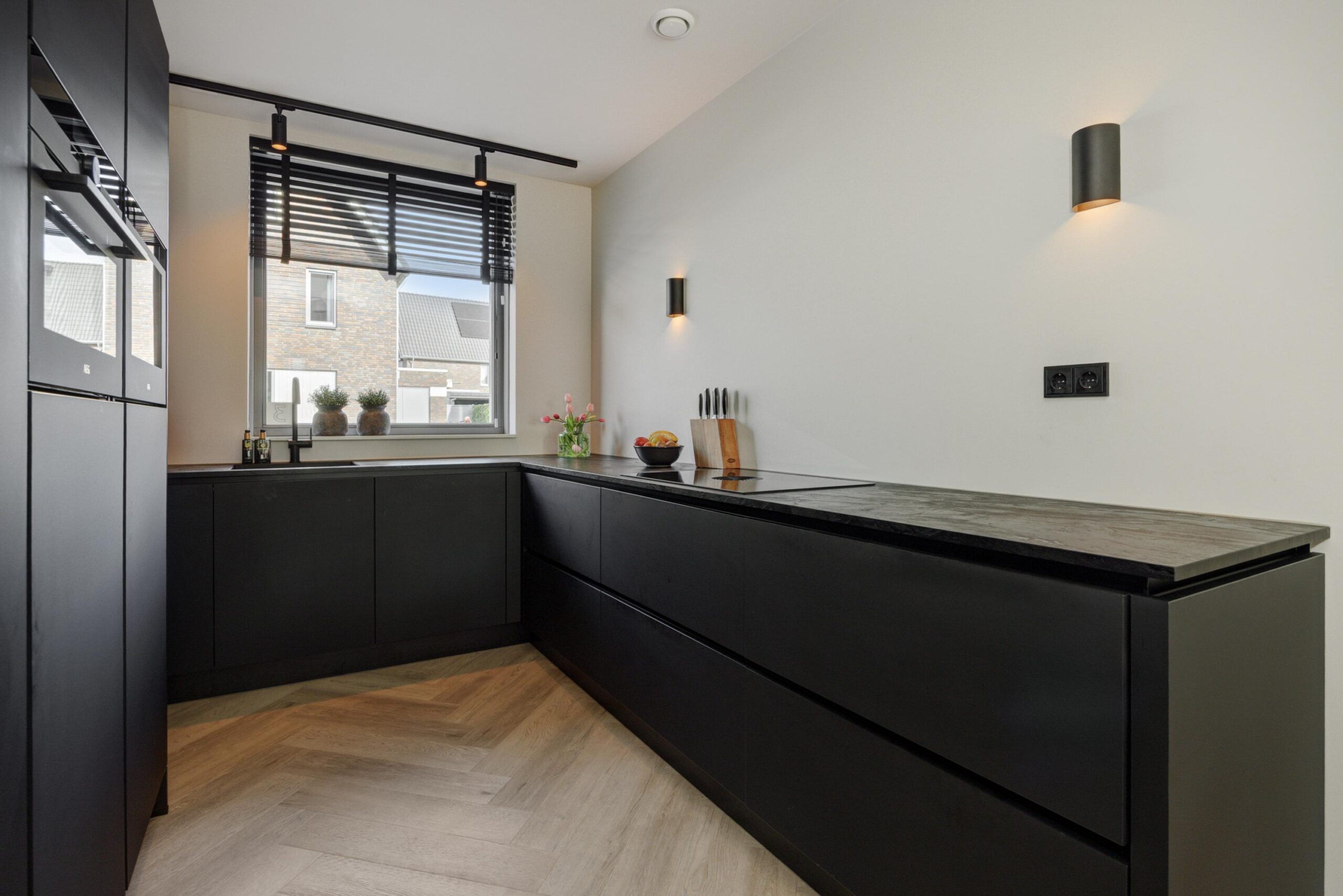 Aan de voorzijde van de woning bevindt zich de stijlvolle, hoogwaardige keuken. Deze is van alle gemakken voorzien, waaronder een grote koelkast, separate vriezer, vaatwasser, wijnklimaatkast en een Bora inductiekookplaat met geïntegreerde afzuiging. Een perfecte plek voor kookliefhebbers die comfort en design weten te waarderen.
