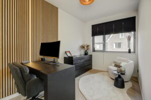 Ook deze verdieping is volledig voorzien van vloerverwarming in combinatie met een visgraat PVC vloer.
